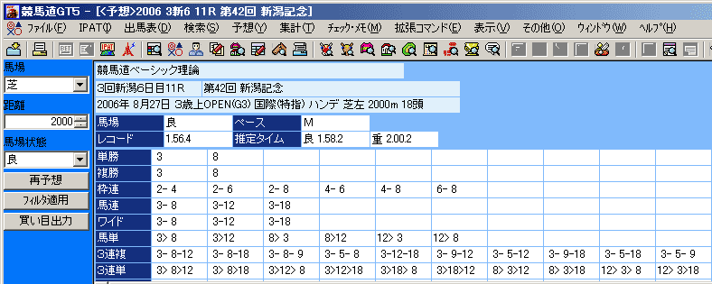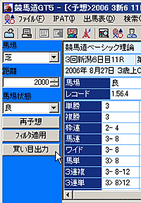 このときに上のファイル出力にチェックを入れると、GT5本体はもちろん(メニュー[IPAT]→[買い目ファイルの読み込み])情報TODAY(別プロセスで起動の場合)に読み込ませる買い目ファイルを作成することができます。