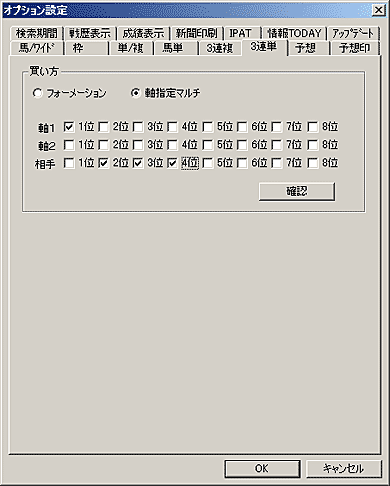 - [オプション設定]画面の確認ボタンをクリックすると、指定した買い目の点数、内容が表示されます。