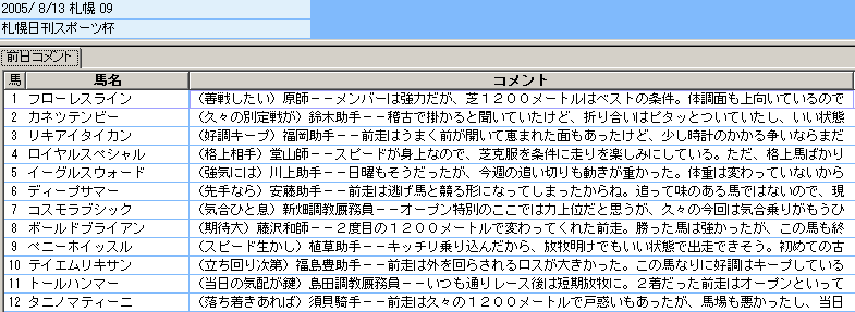 ※※各場後半4レース分のコメントを2006年9月29日〜2007年9月22日まで提供します。