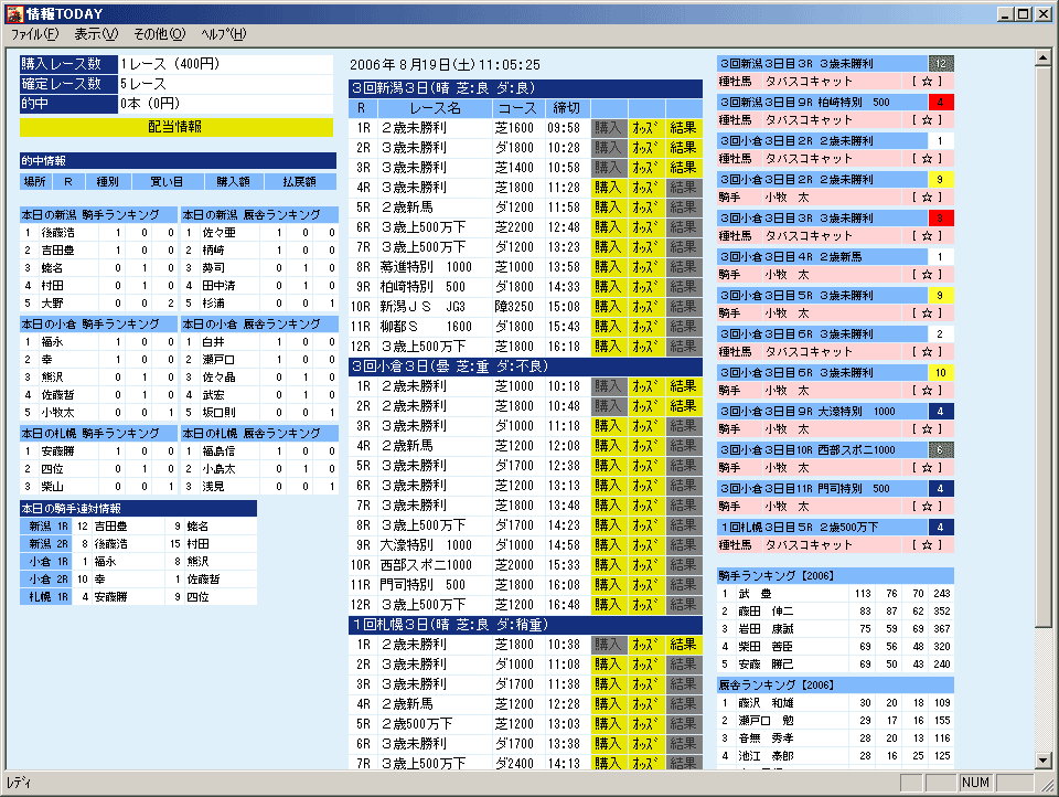 競馬道OnLineとIPATで提供されるデータを利用して、当日のレース情報やオッズ、成績、騎手、厩舎ランキング、収支などを表示する機能[情報TODAY]の活用法を説明します。