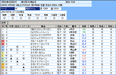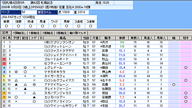 予想オッズデータの場合は単勝・馬連のみのオッズ表示となります。