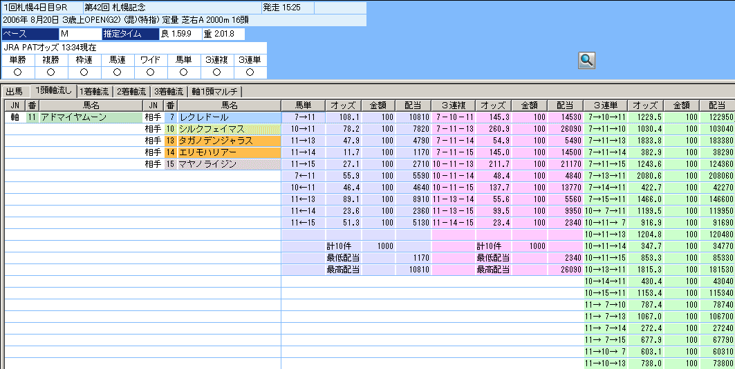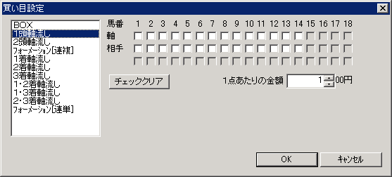 2)【1頭軸流し】1頭を軸に相手を選ぶ(軸は1頭しか選べません)