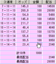 11)【フォーメーション(連単)】フォーメーション方式で3連単を選択