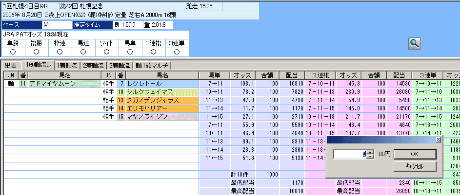 まず、買い目を設定した上で、その買い目に関連するオッズを表示、比較します。購入金額も変更でき、IPAT投票にも連動します。