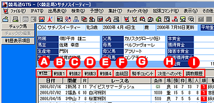 | H:次走へのメモタブ | レース後の「騎手コメント」と「次走へのメモ」が表示されます。 |