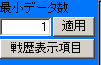 拡張コマンドには「最小データ数」の[適用]ボタンと[戦歴表示項目]のボタンが表示されます。