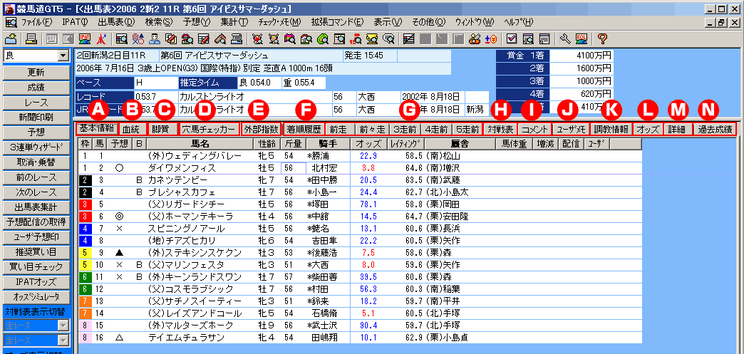 | N: 過去成績タブ(芝・ダ重賞のみ) | 同レースの過去成績を表示します。 |