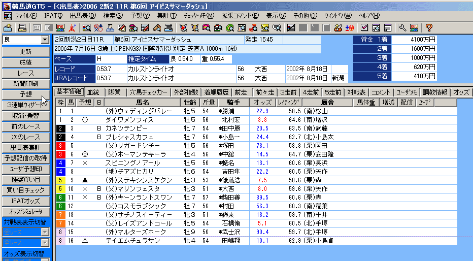 出馬表に表示されているレースを予想する