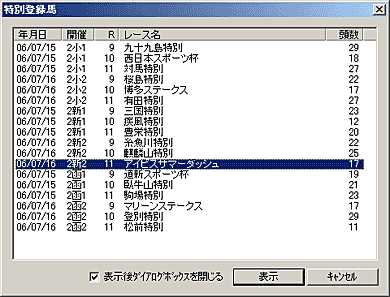 特別登録馬データを検索する