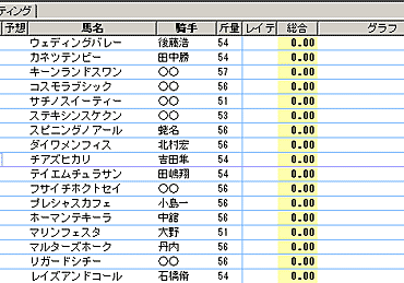 特別登録馬一覧表示画面から[拡張コマンド]の[想定出馬表]を選択すると想定出馬表を作成できます。